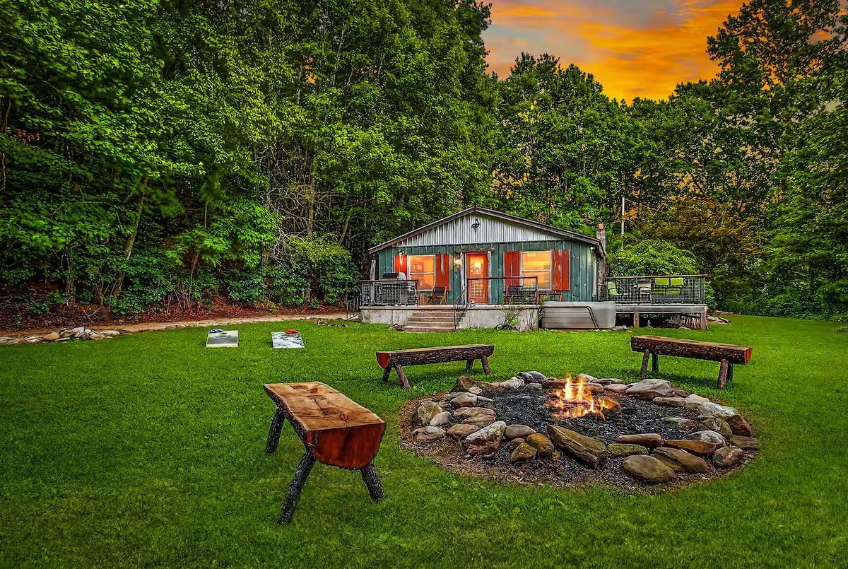 Cozy retreat just 9 miles from downtown Asheville. Enjoy serene mountain views, a hot tub, and a fire pit under the stars.